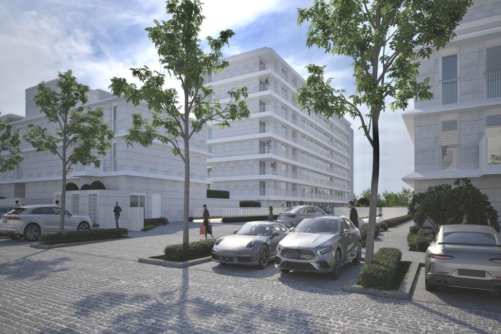 Lake — the new building rising within The Garden, in Matosinhos, joining Natura and Factory to create a unique residential retreat. This modern project is surrounded by beautiful gardens and lakes, offering families a perfect blend of city living and natural tranquility.